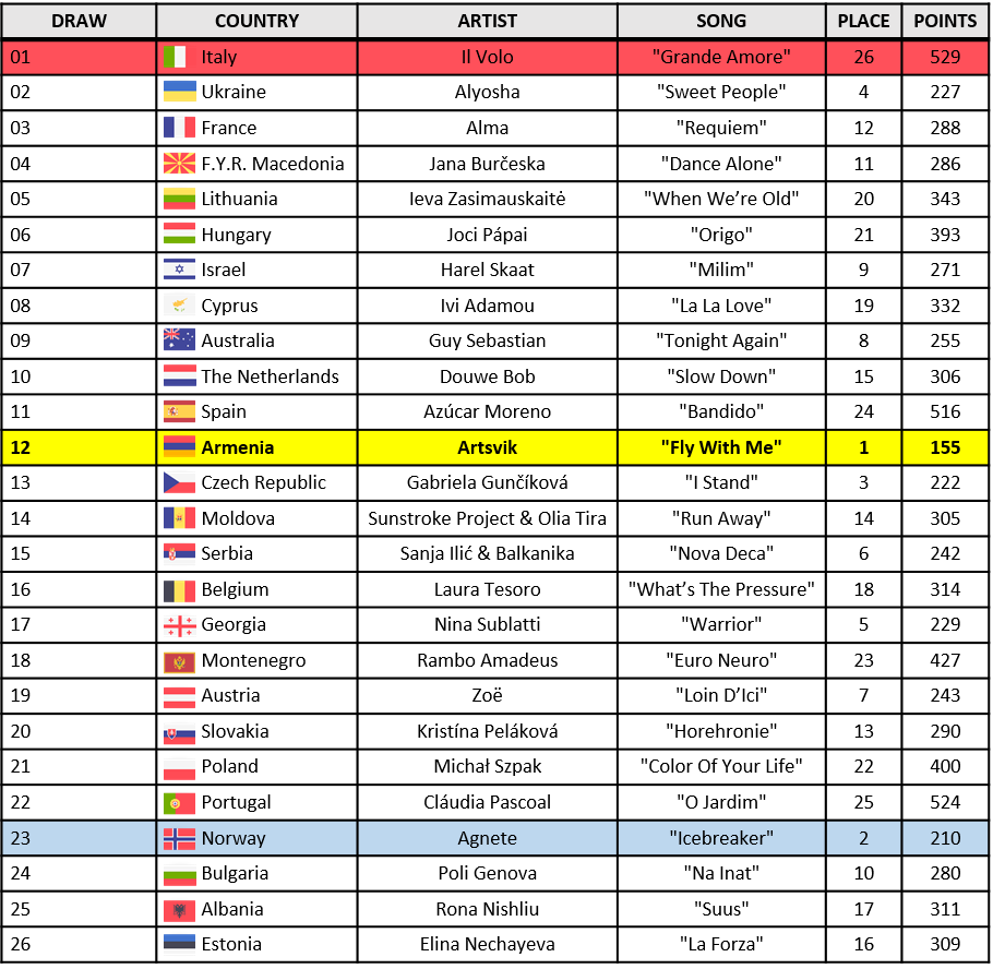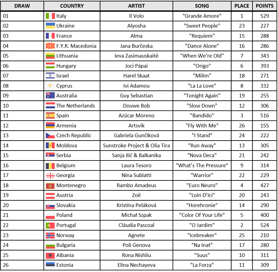 In this season a twist was introduced, that twist was kept as secret between juries, televote didn't knew it until the end. In the Grand final juries voted for the songs they didn't wanted to win, while televote did the opposite. After the voting the scoreboard was flipped upside down finding then the average song between jury and televote. The song with less votes wins.